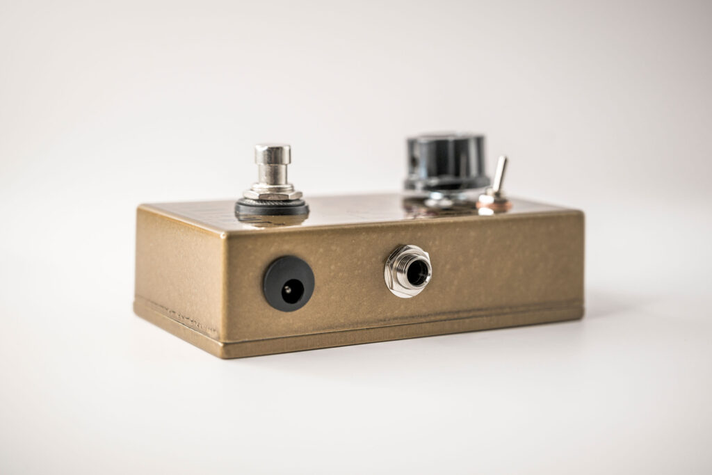 Changements esthétiques (2025) : bouton 27mm, rondelle cuivre switch, contre écrou noir 3PDT, changement de peinture pour du bronze doré martelé.